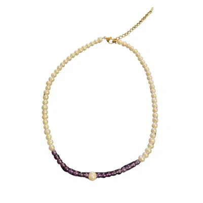 Women's White / Purple Pearl & Amethyst Necklace In Multi