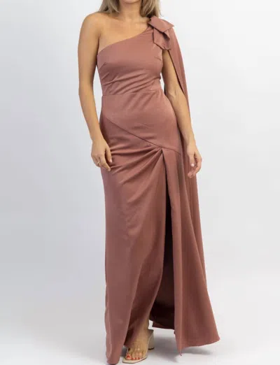 One Shoulder Sash Satin Maxi Dress In Mauve In Brown
