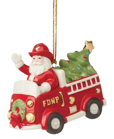 Santa In Fire Truck Ornament In Ivory