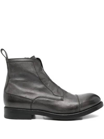 Zip-up Leather Boots In Gray