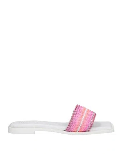 Woman Sandals Fuchsia Size 11 Textile Fibers In Pink