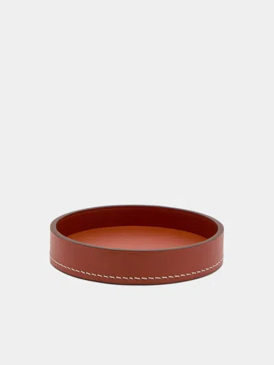 Armance Leather Round Tray Abask Luxury Gift In Brown