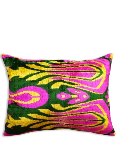 Ikat Print Velvet Cushion In Multicolor