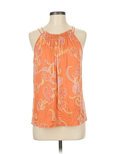 Tank Top Orange Print Pattern Halter Neckline Tops