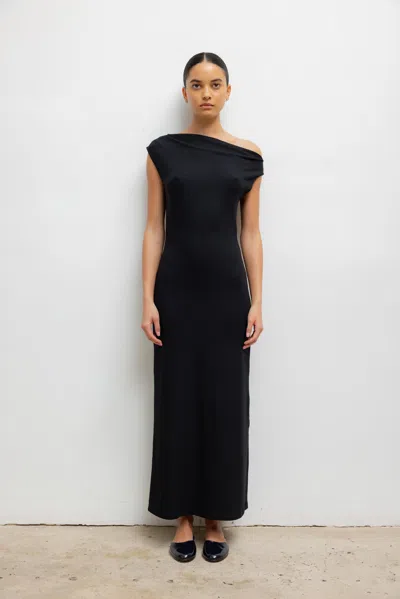Pre-order: Lauren Ruched Asymmetrical Shoulder Dress In Black