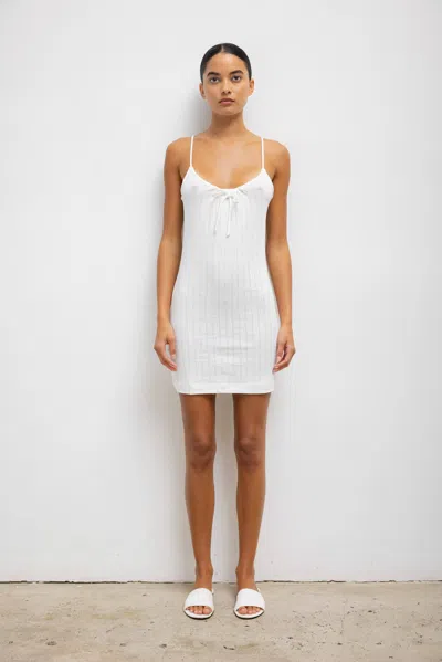 Pointelle Square Neck Mini Dress In White