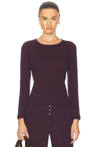 Pointelle Slim Fit Long Sleeve Top In Dark Berry