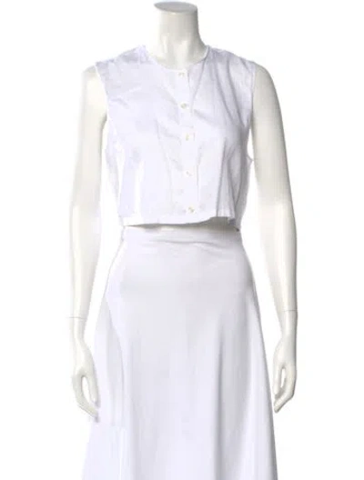 Pre-owned Crew Neck Sleeveless Crop Top In White