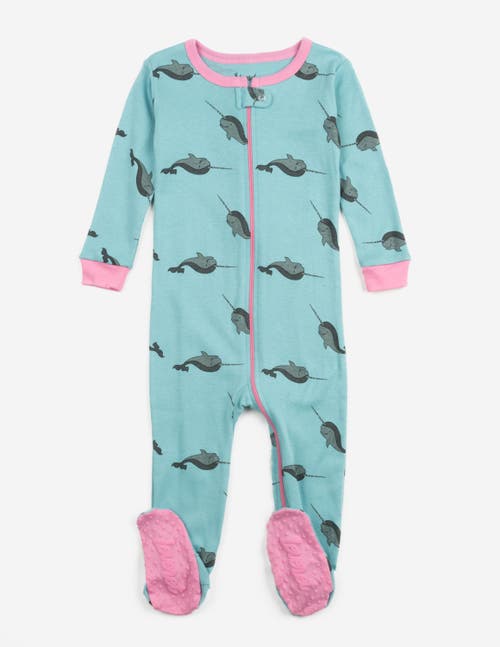 Kids' Footed Cotton Matching Family Pajamas, Nature & Water Prints In Blue