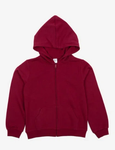 Kids Zip-up Sweatshirt Hoodie, Cotton Blend, Solid Colors In Burgundy