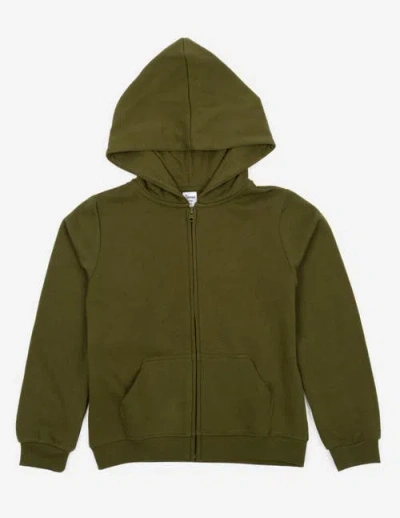 Kids Zip-up Sweatshirt Hoodie, Cotton Blend, Solid Colors In Green