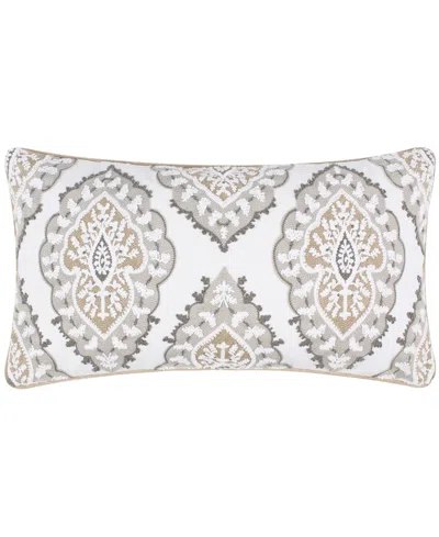 Pisa Embroidered Decorative Pillow, 12" X 24" In Gray
