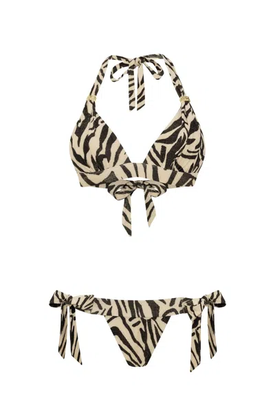 Women's Neutrals / Gold / Black Annie & Ginny Bikini Set - Savannah Shimmer In Multi