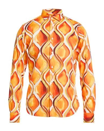 Man Shirt Orange Size 17 Cotton In Multi