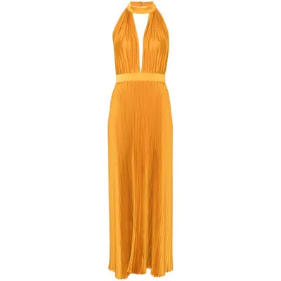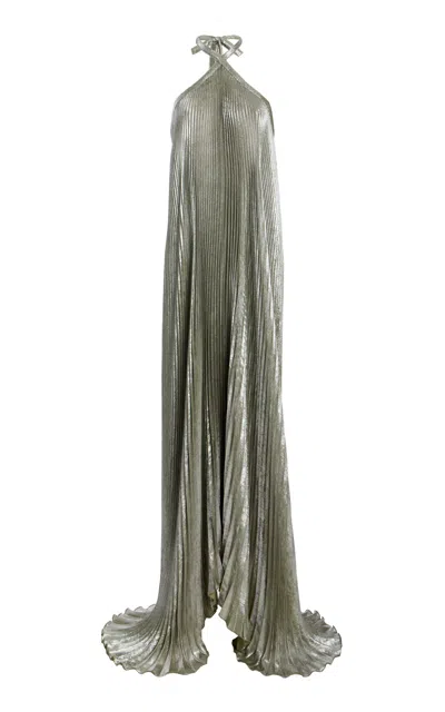 L'idee Renaissance Halter Side-slit Pleated Maxi Dress In Blue