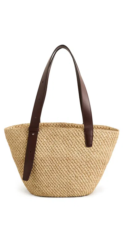Bianca Large Leather-trimmed Raffia Tote In Neutral