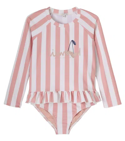Kids' Dagny Striped Rashguard Top And Bikini Bottoms Set In Pink