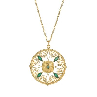 Women's Gold / Green Green Onyx Medallion Necklace In Multi