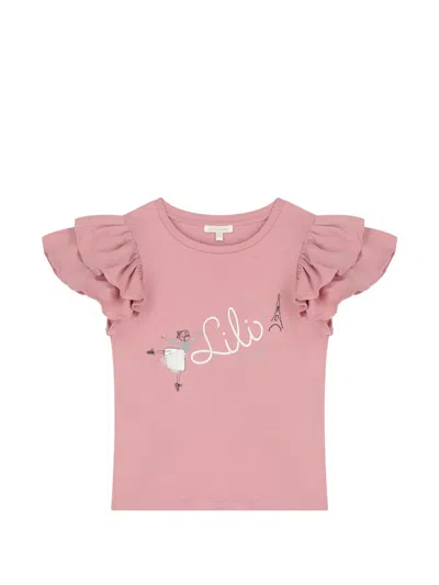 Kids' Ruffled-sleeves T-shirt In Pink