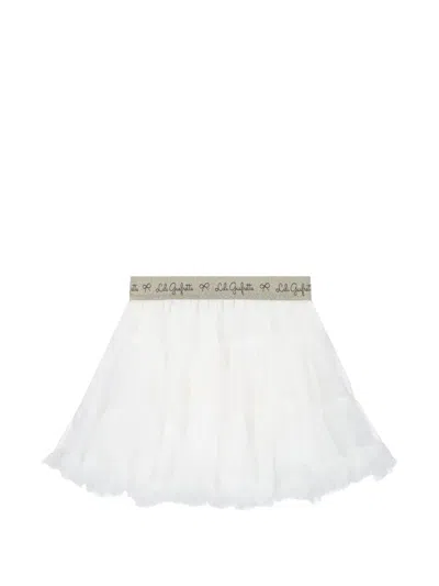 Kids' Logo-waistband Tulle Skirt In White