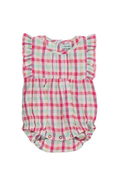 Kids' Lilly + Sid Organic Cotton Check Print Romper In Pink