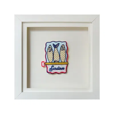 Blue / Gold / Red Paris Embroidered Stamp Artwork In Multi