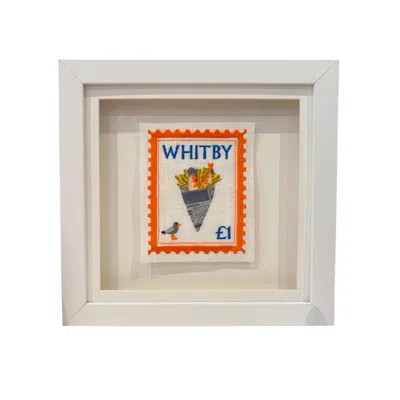 Orange Whitby, England Inspired Postage Stamp Wall Art