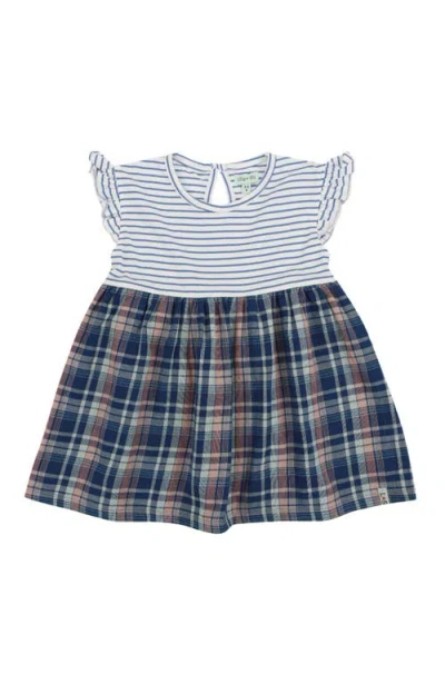 Babies' Organic Cotton Check And Stripe Dress In Blue