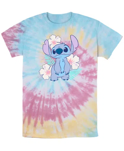 Men's Stitch Flower Set Short Sleeve Tie Dye T-shirt In Blue Pink