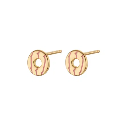 Women's Gold / Pink / Purple Gold Plated Party Ring Biscuit Stud Earrings With Pink Enamel In Multi