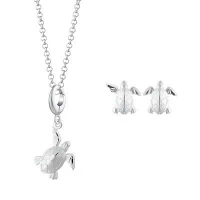 Women's Sterling Silver Turtle Necklace & Studs Jewellery Set