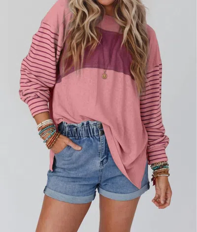 Color Block Knit Sweater In Apricot Grey White In Multi