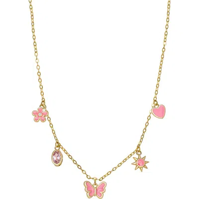 Kids' Enamel & Cubic Zirconia Charm Necklace In Pink
