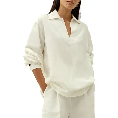 Drop Shoulders Oversize Silk Shirt In Natural White