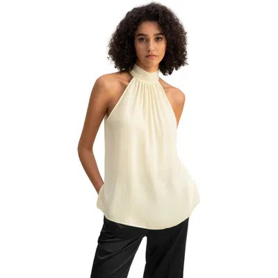 Sleeveless Silk Top Ivory Halter Neckline Tops In White