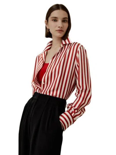 Classic Striped Silk Shirt In Lilac-white Pinstripes