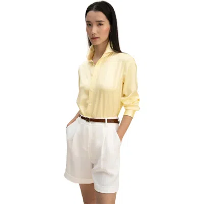 Minimalist Long Sleeve Silk Top In Lemon Drop