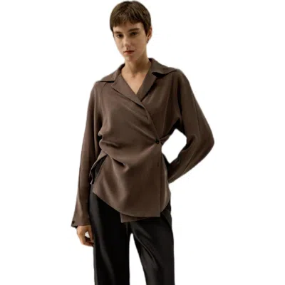 Pure Silk Blouse Wrapover Cropped Shirt In Toasted Chestnut