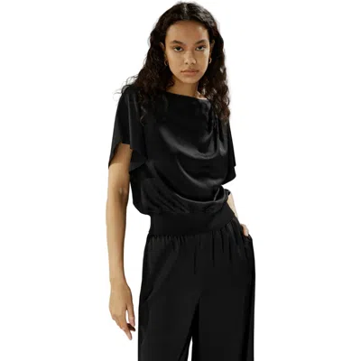 Short Rippled Batwing Sleeves Silk Shirt In Black