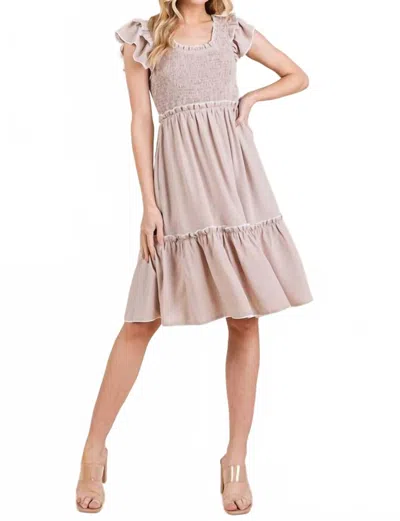 Ruffle Smock Dress In Beige In Pink