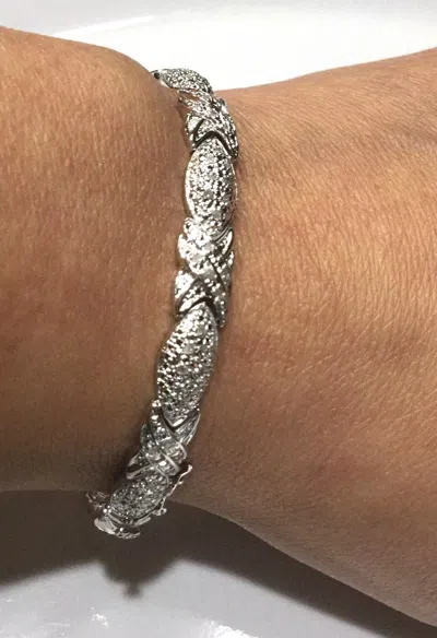 Pre-owned 1.15 Ct Platinum Diamond Hugs & Kisses Bracelet, Ss .925 7.25 In. In H-i