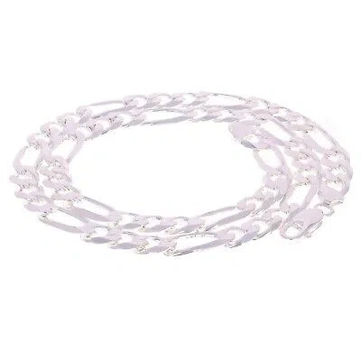 Pre-owned 925 Sterling Silver Solid Figaro Chain Necklace 8mm 20" 47.8grams