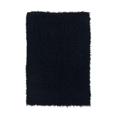 Flokati Solid Woven Rectangular Accent Rug In Black