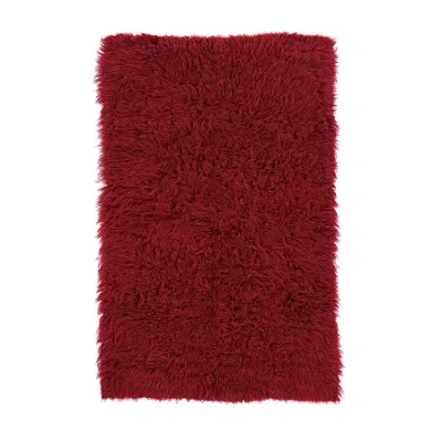 Flokati Solid Woven Rectangular Accent Rug In Red
