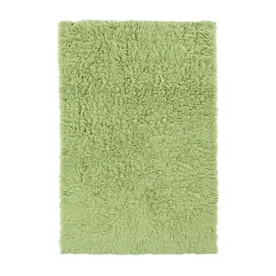 Flokati Solid Woven Rectangular Accent Rug In Green