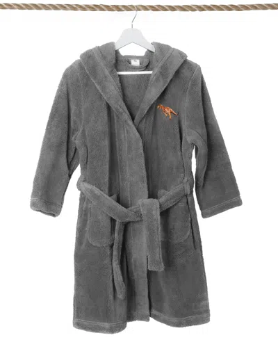 Kids Dino Super Plush Double Brushed Hooded Bathrobe In Grey