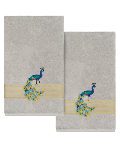 Turkish Cotton Figi Embellished 2-pc. Hand Towel Set In Silver