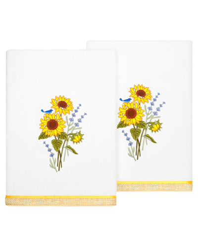 Turkish Cotton Botanica Embellished 2-pc. Hand Towel Set In White