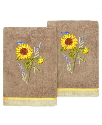Turkish Cotton Girasol Embellished 2-pc. Hand Towel Set In Cocoa