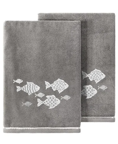 Turkish Cotton Figi Embellished 2-pc. Bath Towel Set In Charcoal